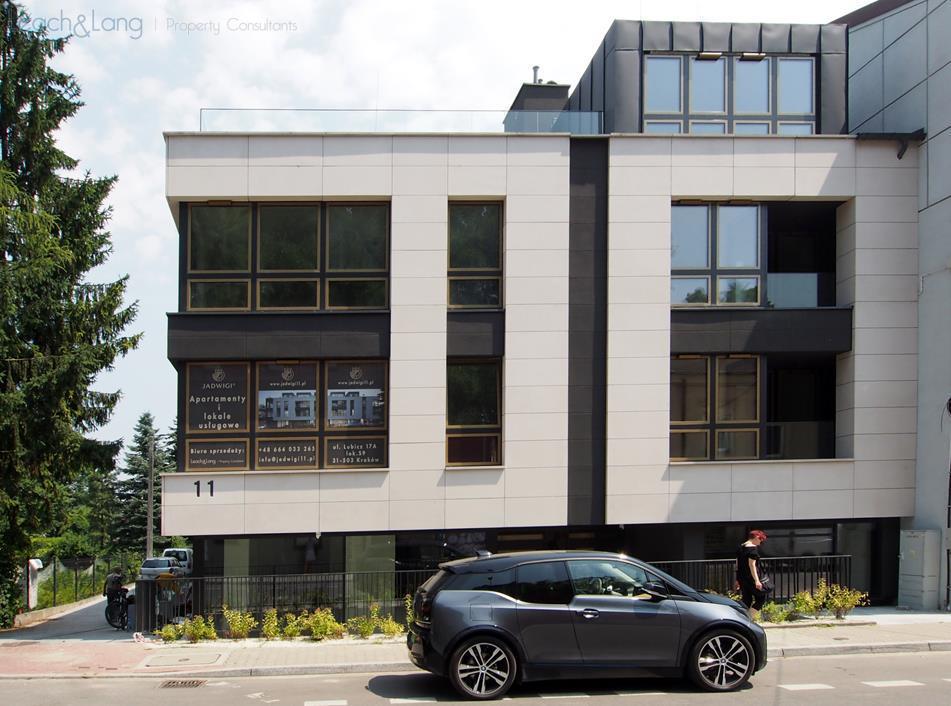 The cozy investment at Jadwigi 11 harmoniously combines a private residential area with a spacious, transparent premises for business purpose.