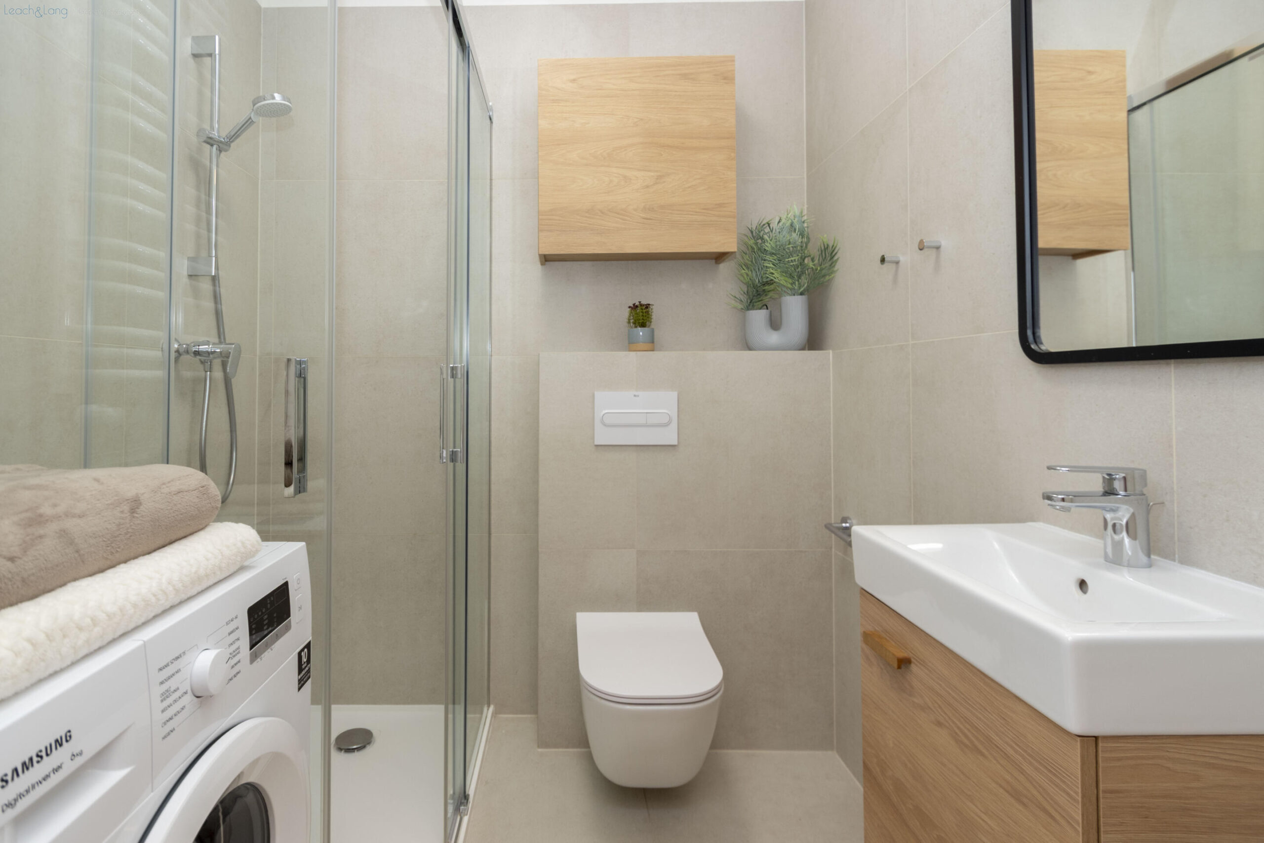 - bathroom with a shower, also equipped with a washing machine,