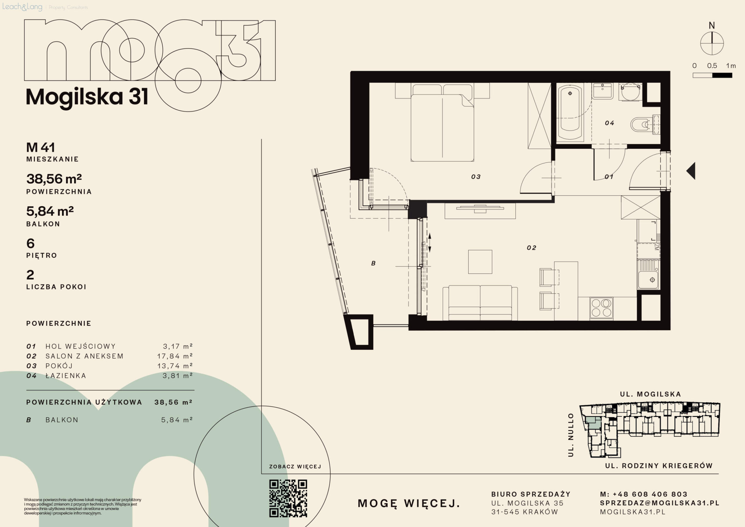 Leach & Lang, acting as the exclusive sales agent for the new Mogilska 31 development (direct offer no commission), is pleased to present a modern apartment for sale, located in the very centre of the city, on Mogilska Street in Kraków. The property is situated in one of the best-connected areas of the city, just a few steps from Rondo Mogilskie.